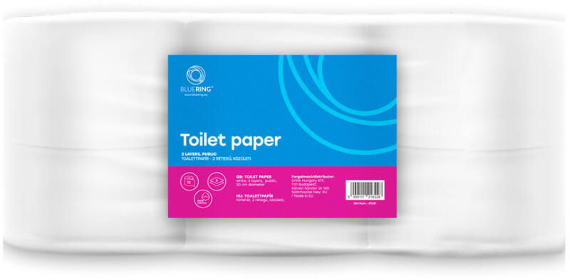 BLUERING Toalettpapír 2 rétegű közületi átmérő: 19 cm 100 % cellulóz 180 m/tekercs 12 tekercs/csomag Bluering®_hófehér (JP8M180) - iroda-ellatas