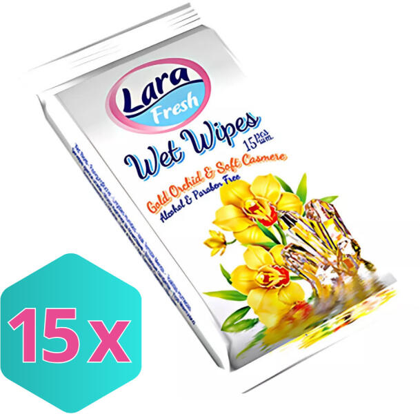 Lara Nedves Törlőkendő, Alkoholmentes Orchidea és Kasmír illatú KARTON - 15 db (K8699444263687)