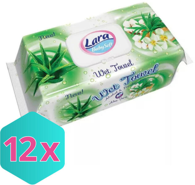 Lara Nedves Törlőkendő, alkoholmentes, parabénmentes Aloe Vera illatú KARTON - 12 db (K8699444262949)