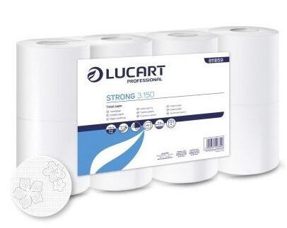 Lucart 3.150 háztartási toalettpapír, 3rétegű, cellulóz, 150lap/tek. , 8tek. /cs. , 8cs. /zsugor