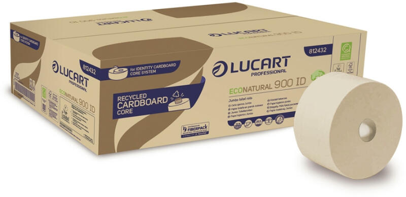Lucart ECO Natural 900 ID Mini közületi toalettpapír, 202m 2 rétegű - Lucart Identity Autocut adagolóval használható - közületi nagytekercses toalettpapír - Ecolabel címkével ellátott környezetbarát termék - havanna barna színű - 2 rétegű - 202 méter/tekercs - 12 tekercs/zsugor - 48 zsugor/raklap