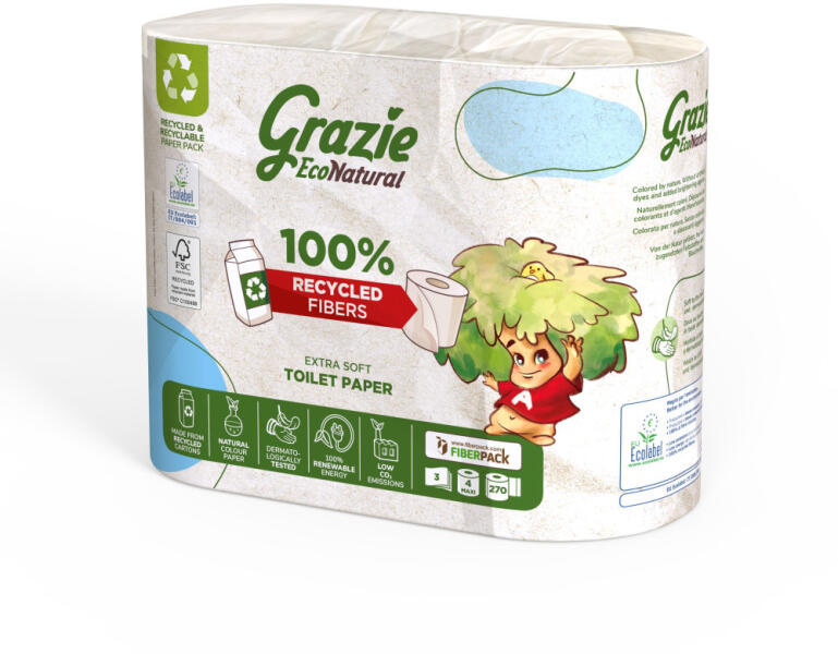 Lucart GRAZIE NATURAL háztartási toalettpapír, 3 rétegű, 4 tekercs