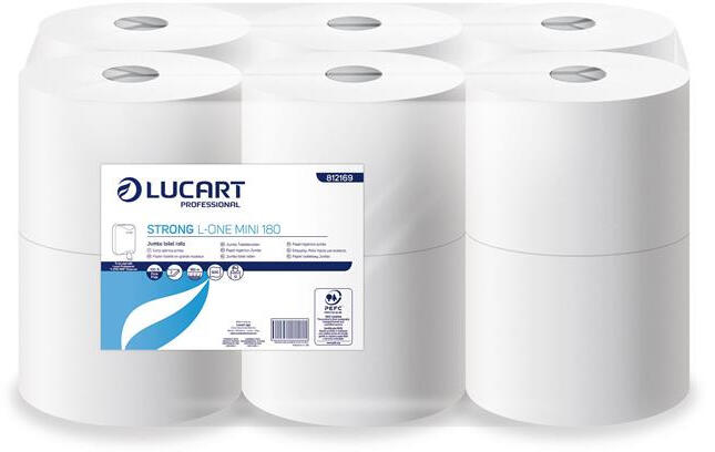 Toalettpapír, 2 rétegű, 12 tekercses, LUCART "Strong L-One mini 180", hófehér