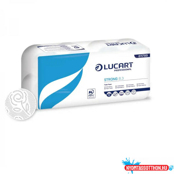 Lucart Strong 8.3 háztartási toalettpapír - 250 lapos, - 72 tekercses - kistekercses, háztartási toalettpapír - 3 rétegű - hófehér - 250 lap/tekercs (29 méter) - 72 tekercs/csomag - 8*9 csomag/zsugor (72 tekercs) - 32 zsák/r#