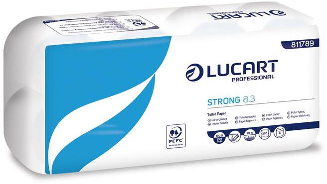 Toalettpapír, 3 rétegű, kistekercses, 8 tekercses, LUCART "Strong 8.3", fehér
