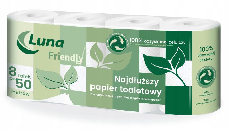 Luna Friendly extra hosszú, illatmentes toalettpapír, 50m, 8 tekercs (24702)