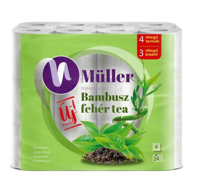 Müller Toalettpapír 4 rétegű kistekercses 100% cellulóz 24 tekercs/csomag Bambusz Müller fehér tea (42604)