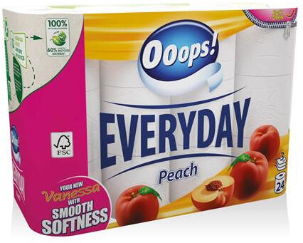 Toalettpapír, 3 rétegű, kistekercses, 24 tekercs, OOOPS "Everyday"