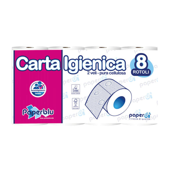 Paperdi Toalettpapír 2 rétegű kistekercses 100% cellulóz 150 lap/tekercs 8 tekercs/csomag Paperblu Carta Igienica_Paperdi (ID8G450F8/P) - officefirst