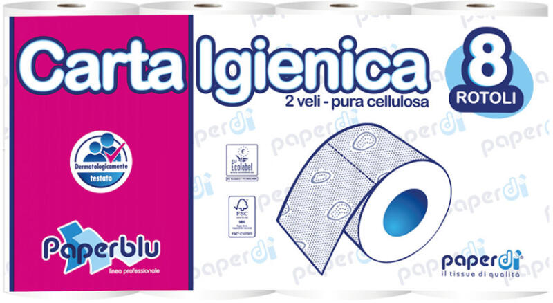 Paperdi Toalettpapír 2 rétegű kistekercses 100% cellulóz 150 lap/tekercs 8 tekercs/csomag Paperblu Carta Igienica_Paperdi (ID8G450F8/P) - veryjet