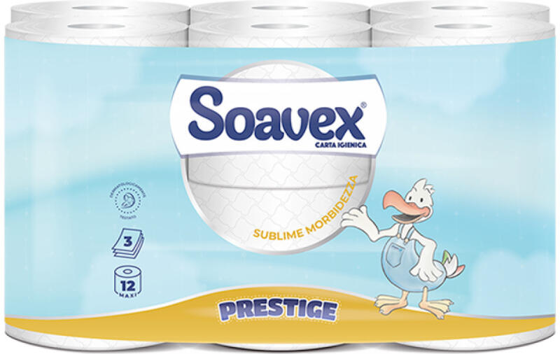 A Soavex Maxi Prestige Paperdi 3 rétegű toalettpapír egy prémium kategóriás toalettpapír, amely a kényelmet és a minőséget helyezi előtérbe.