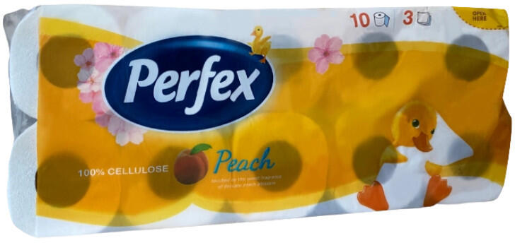 Perfex Deluxe 10 tekercses toalettpapír, 3 rétegű, barack illatú, 100% cellulóz alapanyagból.