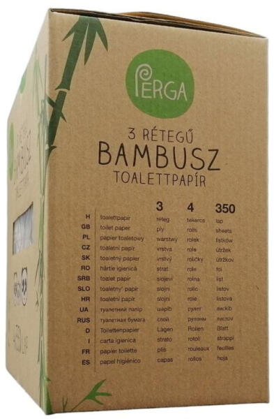 Ez a kiváló minőségű, lágy, puha papírtermék kíméletes a bőrhöz, és talán jobb is, mint cellulózból készült, hagyományos társai. 4 db-os bambusz toalettpapír; Perga termék az ökotudatos termékek kedvelőinek.
