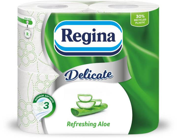 A Regina Delicate Refreshing Aloe frissítő Aloe Vera illatával és prémium puhaságával gyengéden gondoskodik bőröd kényeztetéséről a nap minden pillanatában. Most új, prémium csomagolásban kapható.