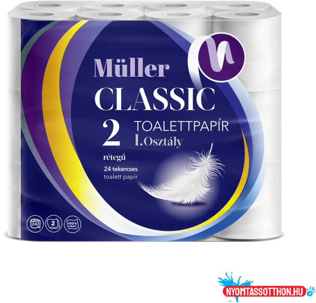 Toalettpapír 2 rétegű kistekercses 100% cellulóz 100 lap/tekercs 24 tekercs/csomag Müller Classic