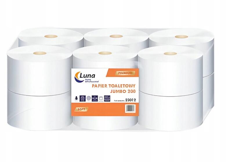 Toalettpapír, Jumbo, 12 tekercs, 200 lap/tekercs, 2 rétegű, cellulóz (23012)