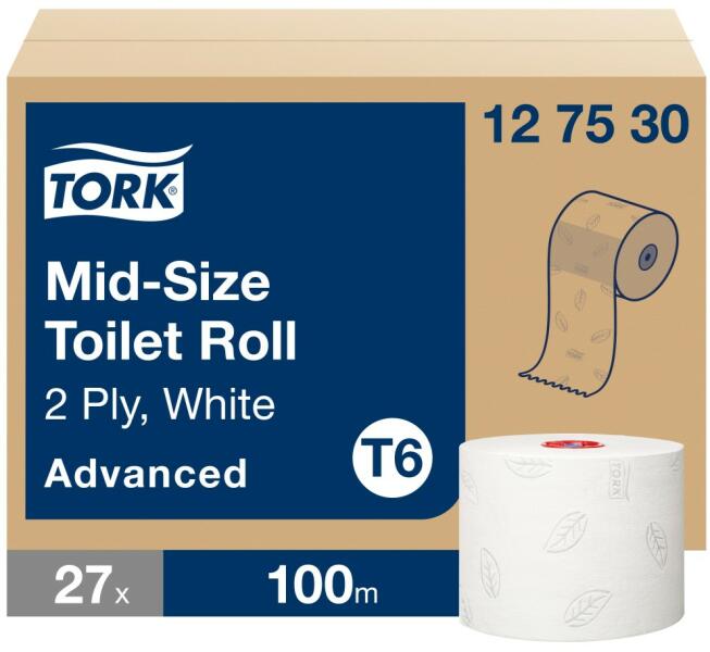 Tork Advanced Mid size ipari WC papír tekercs T6 2 rétegű, fehér, 27x100m SCA127530