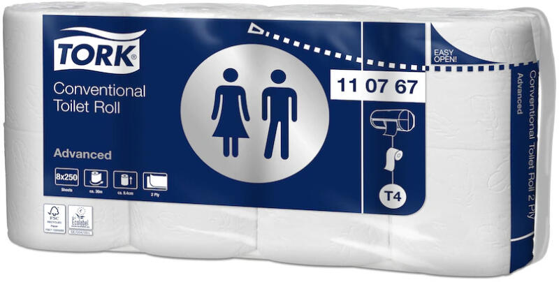 Tork kis tekercses toalettpapír – 2 rétegű A Tork kis tekercses toalettpapírral professzionális környezetben is biztosíthatja vendégei számára az otthon kényelmét. Ez a toalettpapír tökéletes egyensúlyt teremt az ár és a minőség között a kis forgalmú mosdókban.