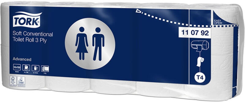 Tork Toalettpapír 3 rétegű átmérő: 12 cm 150 lap/19, 4 m/tekercs 10 tekercs/csomag Soft T4 Tork_110792 fehér (BLACKFRIDAY_OK_40966)