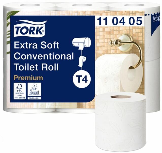 Galéria - Tork Toalettpapír 4 rétegű kistekercses átmérő: 11, 8 cm 153 lap/tekercs 6 tekercs/csomag Extra Soft T4 Tork_110406 fehér (110406) - web24