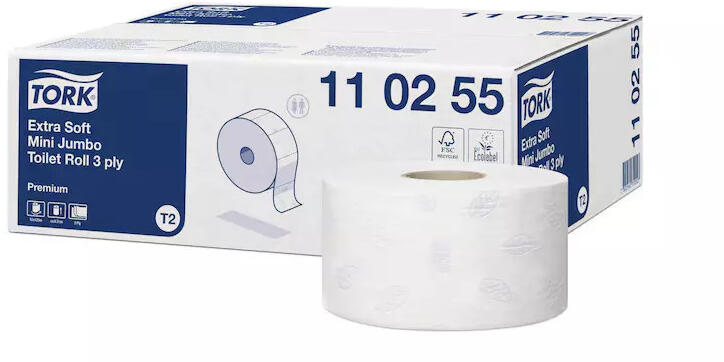 A Tork Mini Jumbo rendszer alapeleme a hatékony időkezelés és a költségcsökkentés: a hagyományos tekercseknél jóval több papírt biztosít. A 3 rétegű Tork Premium Mini Jumbo toalettpapír látványos és kiváló minőségű termék. Közepes és nagy forgalmú helyiségekbe ajánljuk.
