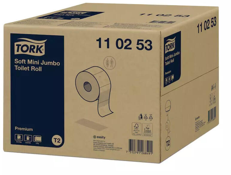 A Tork Mini Jumbo rendszer alapeleme a hatékony időkezelés és a költségcsökkentés: a hagyományos tekercseknél jóval több papírt biztosít. A 2 rétegű Tork Premium Mini Jumbo toalettpapír látványos és kiváló minőségű termék. Közepes és nagy forgalmú helyiségekbe ajánljuk.