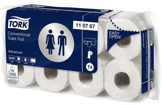A Tork kis tekercses toalettpapírral professzionális környezetben is biztosíthatja vendégei számára az otthon kényelmét. Ez a toalettpapír tökéletes egyensúlyt teremt az ár és a minőség között a kis forgalmú mosdókban. - puha és jó nedvszívó - mutatós minta a jó benyomás elősegítéséhez - kiegyensúlyozott ár-érték arányú toalettpapír - rendszer: T4 – Kistekercses toalettpapír rendszer - minőség: Advanced - tekercs hossza: 30 m - tekercs szélessége: 9,4 cm - tekercs átmérője: 10,3 cm - lapok száma: 250 - lap hossza: 12 cm - 2 rétegű - prégelt - szín: fehér - kiszerelés: 8x8 tekercs/csomag - gyártói cikkszám: 110767   Itt megtekinthető és letölthető a termékadatlap.  Gyártó/első EU forgalmazó elérhetősége: Essity Hungary Kft. Budapest, 1021 Budakeszi út 51. torkcontact@essity. com tork. hu