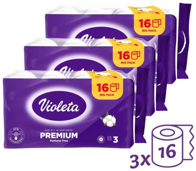 Violeta toalettpapír prémium 3 rétegű, (3x16 tekercs)