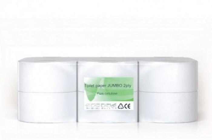 Jumbo WC papír 19 cm átmérőjű, 2 rétegű, 100% cellulóz, 100 m. Puha és kemény, fehér WC-papír. Nagyon forgalmas helyekre alkalmas. 12 db-os csomag.