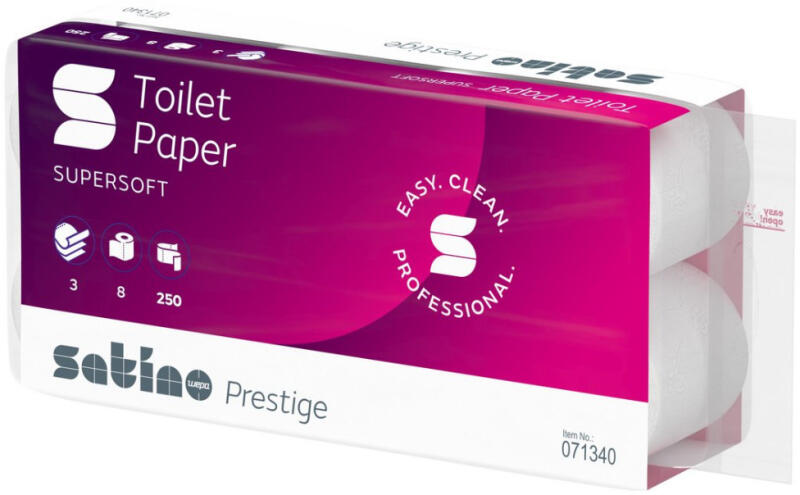 Satino Prestige Wepa toalettpapír 3 rétegű, fehér, 250 lapos, 8 tekercs/csomag, 8 csomag/zsák