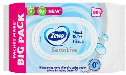A Zewa nedves toalettpapír mostantól már nagy, 80 lapos kiszerelésben is elérhető. Visszazárható fedéllel, hogy a lapok hosszan megőrizzék nedvesség tartalmukat. A Zewa nedves toalettpapírjaival alapos gondoskodást biztosítunk testünk intim területeinek. Száraz toalettpapírral együtt használva több baktériumot távolít el, mint a hagyományos toalettpapír önmagában. A toalettpapírok optimálisan nedvesítettek, hogy alaposan tisztítsanak, de ne hagyjanak maguk után nedvességérzetet. A Zewa nedves toalettpapír mostantól kétszer gyorsabban oldódik fel a WC lehúzása után, így ugyanolyan biztonságos, mint a száraz toalettpapírok.